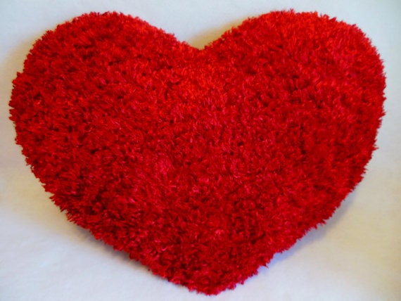 Large Red Heart Fluffy Shaggy Silky Throw Toss Pillow Large Etsy