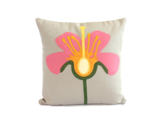 Applique And Stitched Flower Pillow Flower Pillow Pillows Etsy