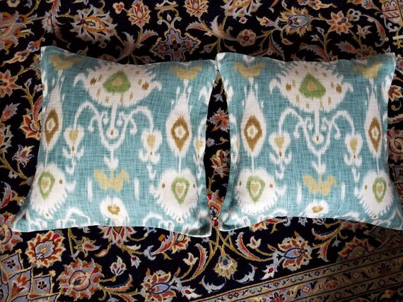 Ikat Print Pillow Shams Turquoise Lime Green Orange Etsy