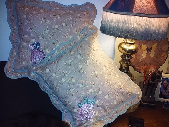 Vintage Rose Pillow Shams Pair With Scalloped Flange Etsy